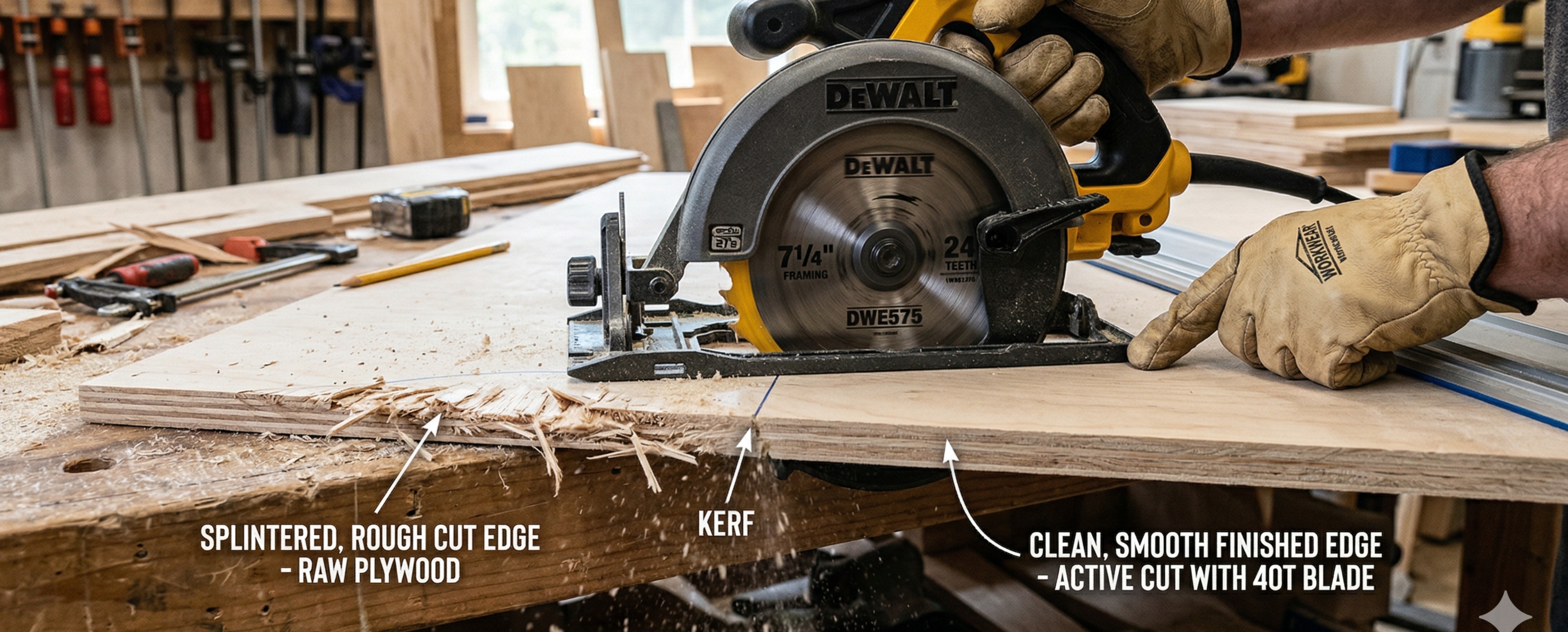 General-purpose blades often tear plywood fibers instead of cutting them cleanly.